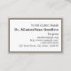 Este diseño tradicional de tarjetas de visita incluye un nombre, un nombre de clínica o de empresa, un nombre de rol de trabajo e información de contacto que se puede personalizar. Tarjetas de visita como estas pueden ser utilizadas por un profesional como un médica familiar o un médica.