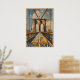 Dé un paseo atemporal con este nostálgico afiche de viajes inspirado en el WPA, que presenta la icónica vista desde lo alto del puente de Brooklyn, hacia el horizonte de Manhattan. Diseñado con la audaz y racionalizada estética de la obra de arte Works Progress Administration de los años 30, este poster evoca la época dorada de los viajes americanos con una perfecta combinación de grandeza arquitectónica y encanto vintage. Los cables de acero del puente de Brooklyn se encuentran en una elegante posición superior, guiando el ojo del espectador hacia un estilizado paisaje urbano de rascacielos de mediados de siglo bañados en tonos azules y oscuros y cálidos sepias. El cielo brilla suavemente, dando a entender la luz de la madrugada o la hora dorada del atardecer, reforzando un ambiente de anticipación y descubrimiento. Las sombras caen a lo largo del camino del puente, añadiendo profundidad y drama, mientras que las torres de granito del puente se elevan como centinelas, simbolizando fuerza, resiliencia y progreso. Anclar la composición es el titular "Nueva York" con letras audaces de inspiración retro — un tributo al encanto perdurable de la ciudad. La tipografía y la paleta de colores son fieles al estilo de diseño de la era WPA, lo que le da a esta pieza un sabor de calidad museo, arte deco que se siente tanto histórico como contemporáneo. Perfecto para los amantes del diseño vintage, los amantes de la arquitectura y los soñadores de Nueva York, este afiche de viajes hace una declaración sorprendente en las oficinas, estudios o cualquier espacio que celebra el espíritu de la exploración y la energía de la ciudad que nunca duerme.