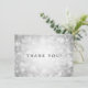Diseño elegante de "Nota de agradecimiento" de boda invernal con motivo Silver Winter Wonderland (copos de nieve y destellos), nombres personalizados y texto de fecha. Impresiona a tu familia y amigos con este diseño moderno y elegante.