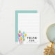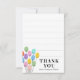 Perfecto para un joven escritor infantil, esta pequeña tarjeta de nota de agradecimiento plana tiene líneas sutiles para ayudar a los nuevos escritores a mantener sus líneas rectas y les da espacio para escribir un simple mensaje de agradecimiento por los regalos recibidos después de su celebración de cumpleaños. Los globos de cumpleaños pastel bonitos añaden diversión.