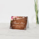 Tarjeta de agradecimiento floral rosa acuarela con luces de encaje de madera para boda rústica