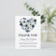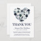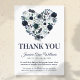Nuestras hermosas notas de agradecimiento funerario sirven como una sincera expresión de gratitud hacia sus seres queridos que los han reconfortado en tiempos difíciles. Decoradas con un rústico corazón floral azul, estas tarjetas de invitación llanas transmiten su apreciación de manera elegante.