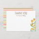 Envía un mensaje de agradecimiento después de fiestas de cumpleaños o eventos especiales con esta papelería plana inspirada en la naturaleza que presenta texto fácil de editar. Cambia el titular "gracias" a un mensaje de tu elección y edita el texto del nombre para un regalo verdaderamente único. Encantadoras flores ilustradas de billy ball craspedia amarillas florecen en la parte frontal con un pequeño detalle de mariquita, mientras que la parte posterior presenta una franja de arcoíris colorida de colores inspirados en el retro y neutrales en cuanto al género, como verde menta, azul cielo, óxido, amarillo dorado y rojo coral sobre un fondo cremoso.