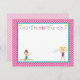Nuestra tarjeta de agradecimiento para la fiesta de cumpleaños de gimnasia de lunares rosados coincide con nuestra linda invitación para la fiesta de gimnasia. Este es el artículo coincidente perfecto para enviar a su familia, amigos y invitados a la fiesta para agradecerles por celebrar con usted o por regalos. Este diseño presenta a nuestras adorables gimnastas con patrones y acentos coloridos. Hay mucho espacio para escribir a mano su mensaje de agradecimiento, o puede utilizar las herramientas para escribir su texto antes de realizar el pedido.