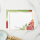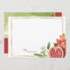 Tarjeta de nota colorida roja y verde de granada con monograma.
