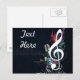 Un colorido resumen de una nota hendida blanca con un micrófono plateado, rodeado de notas musicales sobre un fondo negro. Ideal para un cantante, un intérprete de instrumentos o alguien que ame escuchar música.