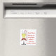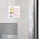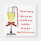 Pequeño imán de Navidades divertidos, con una nota a Santa. Una copa de vino decorada de forma festiva, con un arco rojo en el tallo y un bastón colgado en el borde decora este divertido imán de vacaciones. Una linda nota para Santa dice: Querido Santa, nos quedamos sin leche y galletas, espero que en cambio te guste esto. Personalice si desea que el texto diga algo más.