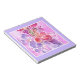 Bello bloc de notas o jotter, con flores de pared en tonos románticos de rosa, lila y malva y un delicado borde de lila pálido, de una pintura acuarela de Judy Adamson.