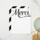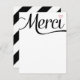 Envíe una elegante correspondencia con estas notas de agradecimiento mostrando la palabra francesa "merci" en un guión de intercambio. La parte trasera de la tarjeta es igual de interesante con un patrón de rayas audaces.