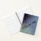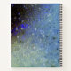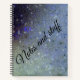 Un grupo de estrellas plateadas de ensueño con un fondo verde azulado abstracto y purpurinoso. La leyenda "Notas y cosas" en negro para el contraste. ¡Feliz escritura!
