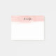 Estas notas de post-it ofrecen un lavado del fondo de la acuarela en rosado y se pueden personalizar con un nombre.