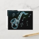 moderno dibujo de estilo libre azul y negro en blanco de un saxofón con notas musicales. instrumento musical en negro y azul.