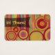 Esta tarjeta de visita se ha dejado intencionalmente el espacio en blanco en la parte posterior. Ofrece una paleta sofisticada de rojos, de oros, de verdes, de azules, y del naranja… incluso algunos estallidos de color rosa oscuro. Pero esa sofisticación es un equilibrio perfecto a los círculos y a las rayas texturizados, jerarquizados caprichosos, peculiares de anchuras desiguales. Una insignia negra parcial-opaca mira a escondidas adentro de la izquierda como una pequeña bandera sobre la cual las palabras "hola allí!" se han rendido en una fuente igualmente amistosa. El diseño colorido puede ser movido alrededor, ser girado o ser vuelto a clasificar según el tamaño si usted quisiera tener un pedazo del control sobre la última mirada de estas tarjetas. Asimismo, cambie sus colores de la fuente y de texto si usted desea. ///si usted quisiera utilizar este diseño como tarjeta de visita real, bastante que dejándola en blanco tan para escribir feliz, las notas amistosas en la parte posterior para los amigos y amados (así como los extranjeros!) hacen por favor. Apenas añada sus detalles en la parte posterior en vez de dejar la en blanco y voila: ¡una pequeña tarjeta de visita feliz para usted!