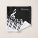 Perfecto regalo para el amante de la música con un diseño con notas musicales salteadas y el clef en blanco y negro con teclas de piano fácilmente personalizado con la plantilla de nombres