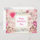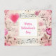 Postal el día de San Valentín con un diseño elegante y nostálgico. Hoja musical decorada con un gran corazón rosa y rosas rosas rosas y flores silvestres alrededor de los bordes.