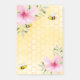 ¡Añade algo de diversión y humor a tus listas de compras de compras de verano o a tu oficina en casa! Fondo amarillo y blanco con un patrón de peine de miel. Decorado con flores tropicales rosas, flores, hibiscos y abejas sonrientes felices.