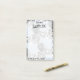 El diseño divertido y despreocupado de los garabatos de azul claro y carbón vegetal en estas Notas Post-It realmente lo convierten en un "Scribble Pad". CAMBIAR LA BÚSQUEDA cambiando el color de fondo sólido al color de su elección, pulse sobre el botón "PERSONALIZAR" y elija entre la amplia selección de colores sólidos disponibles. También puede cambiar el estilo de fuente/color del campo de texto NOMBRE.
