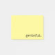 Un rótulo pegajoso amarillo con la palabra 'agradecido' en la parte inferior.