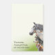 La nota en blanco pegajosa cubre con una foto de un caballo, de un becerro, de un perro y de un gato cortados contra un fondo verde sombreado, para las prácticas animales grandes y pequeñas de la cirugía del veterinario.
