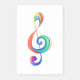 Tecla musical extraída de capas multicolores de colores arcoiris sobre fondo blanco.