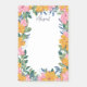 Beautiful tall sticky notes personalized with your name. The floral frame printed like a border around the page will bring a sunny vibe to your desk, its flowers buttery yellow and softly pink. The floral border is drawn in a modern abstract style with lots of greenery in blue and green.