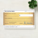 Otra elegante herramienta de Ley de Atracción de JessicaAmber - pregunta acerca de las órdenes de los personalizados! Este artículo muestra una réplica de un cheque en blanco, con espacio para que escriba su nombre, la fecha, el importe y más. Cada pedazo de texto es personalizable, o déjelo en blanco para escribir cosas a mano más tarde. También puede cambiar la imagen de fondo. Pegue estos cheques por toda su casa, auto y oficina, y úsalos como recordatorios de que eres un poderoso creador que manifestará el gran dinero! Un gran regalo para tus amigos que están en las enseñanzas de Abraham-Hicks y El Secreto. ・・・ Para más suministros de la línea de contacto, visite mi tienda Zazzle.com/In_The_Vortex ・・ Para pedidos de los personalizados, envíeme un mensaje a Zazzle