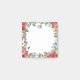 Cuaderno floral post-it con flores coloridas en diferentes tonos de coral rojo, naranja y rosa. Añade tus iniciales en letras azul oscuro.