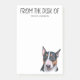 ¡Estos post son increíbles! Cuentan con una adorable acuarela Bull Terrier y tienen "From The Desk Of" y un nombre. Serían un regalo muy lindo para tus amigos o familia amantes del Bull Terrier.
