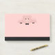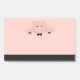Sticky anota celebrando el Año Nuevo Chino. Una gran cara de cerdo rosa con una corbata de arco formal. Levantado por sus pezuñas negras y mirando sobre una mesa. Dibujo tierno y caprichoso. Envuelto en un fondo rosado con corazones apagados. Listo para celebrar el año del cerdo 2019.