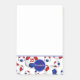 Estas coloridas notas Post-it® de fútbol (4" x 6") presentan pelotas de fútbol tradicionales de estilo rojo, blanco y azul dispuestas al azar de diferentes tamaños en el borde inferior y un nombre y monograma de personalizable sobre un pendiente de círculo azul y número jersey sobre una de las bolas de fútbol - por katz_d_zynes