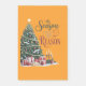 This is a festive and traditional holiday illustration centered around a richly decorated Christmas tree and a collection of wrapped gifts. The tree is a deep green, adorned with warm string lights, white, red, and gold ornaments, and topped with a bright star. At its base are several red, white, and gold presents tied with bows, resting on a snowy or frosted ground. To the right, four lit candles in a black candelabra cast a warm glow. The image is overlaid with elegant, large script that reads "The Season" in dark green and gold, and "The Reason" in deep red, conveying a classic holiday message.