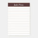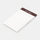 Clásico Chocolate Brown Lined Personalized Notes This personalizable Post -it Notes es simple para cada día usar o enviar una nota formal a alguien desde su oficina principal o su escritorio. También puede elegir una variedad de colores en nuestra tienda para sus necesidades de oficina. Personalice estas notas con su nombre o dé como regalo y personalizar con los nombres de sus amigos o familias para que puedan usarlas en su casa u oficina.