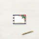 Notas de post-it personalizadas con un marco del oro, claveles rosados, y rayas de azules marinos.
