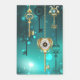 El oro, las llaves antiguas con engranajes y diales cuelgan de las cadenas de oro sobre un fondo verde luminoso.