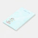 Notas pegajosas personalizados personalizadas de gran tamaño. Diseñado con un encantador ilustracion de un conejito que recorre un globo aerostático decorado con una lujosa cinta rosa, flores y mariposas. El fondo de una acuarela azul pastel le da un toque de ensueño inmaculado.