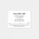 Hay un texto que se puede editar para mostrar el nombre del médico o el nombre de la práctica médica, dirección de oficina y número de teléfono. En la parte inferior, hay un recordatorio de cita. Comienza con una línea para un mensaje personalizado (que se muestra: Su próxima cita) Hay abreviaturas para los días de la semana. Finalmente, hay un área para escribir en la fecha y hora de la próxima cita. Además, puede editar el mensaje de presentación o eliminar el texto de la parte inferior.