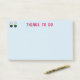 Notas post-it con dos ojos mirando el fondo azul claro y el título "COSAS POR HACER". La imagen y el texto se pueden personalizar.