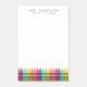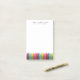 Notas adhesivas coloridas lindas para un maestro de primaria. Nombre simple en letras mayúsculas negras con un borde de crayón de arcoíris. Perfecto para maestros de kindergarten o primaria.