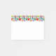 Este bloc de notas Post-It tiene un diseño Bauhaus de una cuadrícula con cuadrados y rectángulos en rojo, verde, azul, naranja, azul claro, amarillo y rojo.