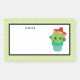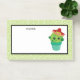 Publica notas con un lindo ilustracion de un cactus verde sentado en una maceta de flores. Grandes ojos kawaii y con sombrero rojo. El fondo es un patrón con remolinos de color verde cal con un marco blanco sobre la parte superior para escribir en el interior.