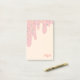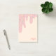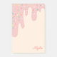 Delicioso bloc de notas adhesivas con un diseño inspirado en un pastel con delicioso glaseado de fresa que gotea por la página amarilla vainilla y espolvoreado con muchas purpurinas de diferentes formas y tu nombre en la esquina en una bonita letra. Bloc de notas adhesivas de glaseado con purpurinas en rosa personalizado con tu nombre en letra rosa. El bloc de notas adhesivas perfecto para una chica que ama los deliciosos pasteles y golosinas, glaseado y purpurinas y crema y todo ese delicioso conjunto.