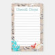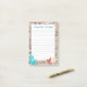 Cada día es un "Día de la Playa" con este panel Post-it® Notes. El fondo de este diseño es una playa de arena, cubierta de conchas marinas. Esta almohadilla notoria regulada presenta un chorro de agua azul acuático, en la esquina inferior izquierda. En la esquina inferior derecha, hay un caprichoso cangrejo rojo con una concha marina.