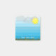 Este diseño de post-it presenta un sol brillante brillante, nubes y césped verde en franjas de gradiente azul. El texto es totalmente personalizable.