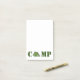 Las notas post-it presentan un ilustracion de marca original de una tienda verde, formando la A en la palabra CAMP. Una nota única de Post-It para tu aficionado al senderismo o al camping favorito.