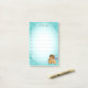 Elegante querubín de Rafael sobre notas adhesivas con gradiente azul turquesa claro rayado.