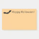 Una silueta de murciélago negro volando en vuelo con el mensaje ¡Feliz Halloween! El texto es negro sobre el fondo de un naranja de calabaza. Un diseño divertido para tomar una nota rápida durante la temporada de Halloween.