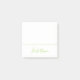 Notas Post-it® Fondo simple, llano, blanco con nombre verde