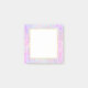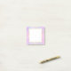 Notas pegajosas con un patrón de fondo abstracto. Las acuarelas rosas moradas y azules componen este diseño artístico que presenta formas rectangulares verticales sobre un fondo suave de mosaico. Un cuadrado sobre el techo con un falso borde de Relieve metalizado dorado, para que escribas dentro.
