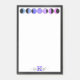 Este bonito y único diseño de boho glam presenta fases del ciclo lunar en la parte superior, como la media luna y las lunas completas, en verde azulado pastel, azul, púrpura lavanda y rosa magenta con zonas sombreadas de negro gris, dispuestas en una llamativa hilera contra un sólido fondo blanco para escribir. El área de escritura está rodeada por un elegante borde de Relieve metalizado metalizado color gris y cepillado. En la parte inferior hay un monograma de lavanda de personalizable y un nombre personalizado en una tipografía elegante de escritura gris oscuro a la moda para un aspecto fresco con letras a mano. El diseño se ha adaptado a los portátiles rectangulares de tamaño medio de 4" x 6". Puede encontrar los otros tamaños de bloc de notas disponibles en la misma colección. Puede personalizar este elemento cambiando el monograma y el nombre de la plantilla de producto.