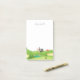 Notas Post-it® Golfer Woman está sobre hierba verde en el campo d